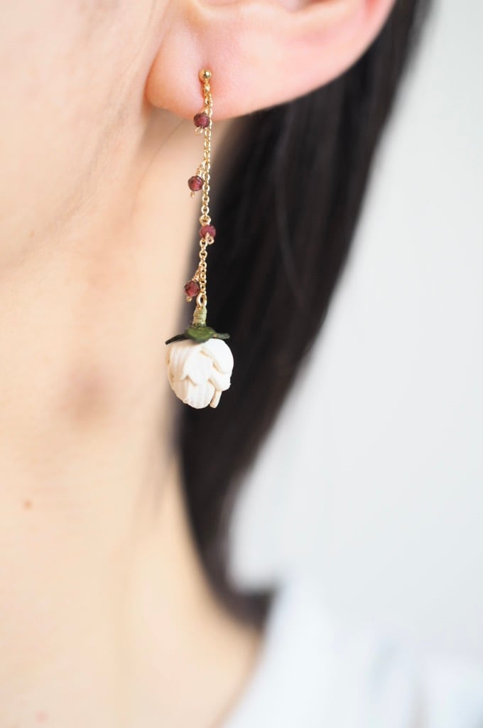 歪な一粒の淡水パールを守るようにしてできた蕾のツメクサ。