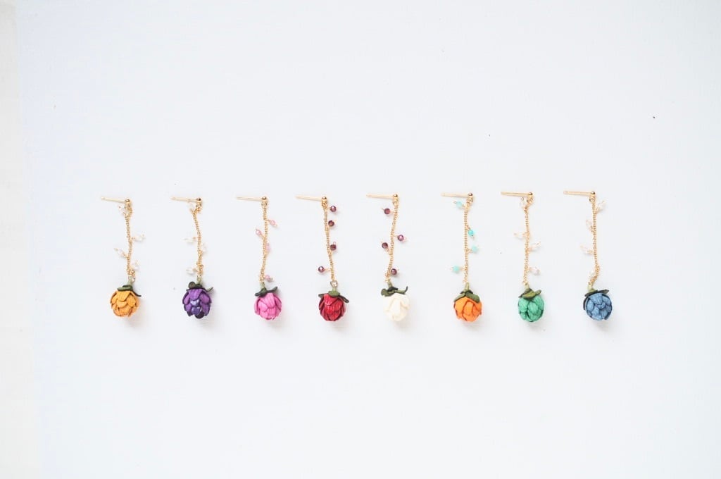 革の端材の一枚一枚を染色しできた、たおやかな草花の耳飾りです。